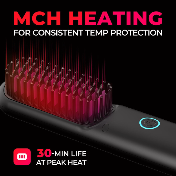 Thanks to its integrated intelligent heat protection , the BellaBrows portable straightening brush distributes heat evenly, preserving the health of your hair . You can use it several times a day without risk of heat damage.